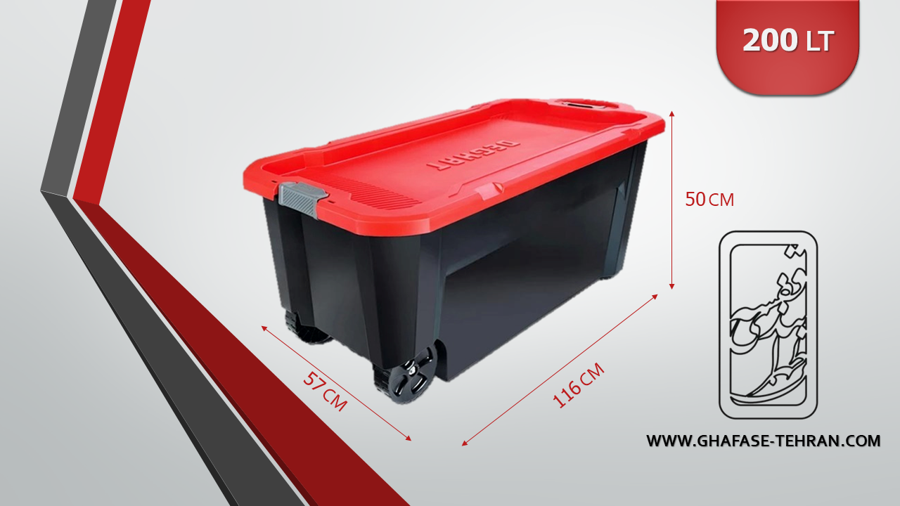 باکس پلاستیکی درب دار 200 لیتری چرخ دار